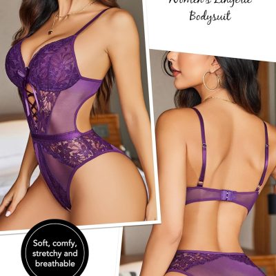 Sexy Lingerie for Women Lace Teddy Lingerie One Piece Bodysuit Deep V Babydoll Nightgown