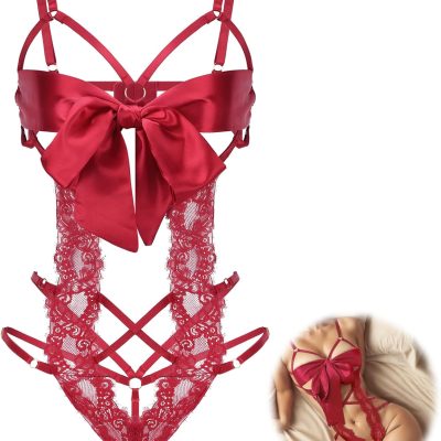 Women Lingeries Deep V Teddy Lingerie Sexy Lace Bodysuit Cut Out One Piece Mini Babydoll